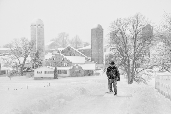 The distance from the farm out this lane to where this gentleman is shoveling is well over a football field in length. Now imagine you are 80 plus years old and have to do this all by yourself in single digit temperatures with a small shovel because your grandchildren are busy keeping warm by the fireplace? Now that you imagined that, lets get back to reality, he lives to the right where the fence is and was more or less taking his shovel for a walk. I originally stopped here because I noticed a snowmobile with its lights on down at the farm. I was hoping for a more exciting shot but at least they did come out. This is a horse and buggy farm, but I guess these are considered acceptable?