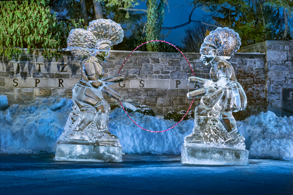 For the last several years, the quaint little town of Lititz has been holding what has become affectionately known as the Fire and Ice festival. Well thanks to good old Covid 19, this year’s event was scaled back with no displays of fire, no food trucks, and the event spread over two weeks to keep crowds from gathering. The opening night featured a couple dozen ice sculptures throughout the downtown and the two ice girls jumping rope were among several sculptures that were real crowd pleasers. the next week will highlight a few I captured during this chilly event.