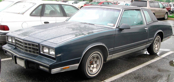This is one of those nights that just about everyone hurries to get home before they become stranded on some drifted back road. Having a Jeep, 4wd and great snow tires takes a bit of the anxiety out of winter driving. The older I get the less I enjoy winter weather driving or maybe it’s just dealing with drivers who have no clue how to navigate. I was behind a guy heading toward a hill and as he gets ready to start up it, he decides that momentum is his enemy and slows to a crawl? Needless to say he got halfway up and had to back down. When I look back to my youthful days of driving I will never forget taking my girlfriend, who is now my wife to go shopping in a small snowstorm. I owned a brand new rear wheel drive Monte Carlo which was exactly like the one I show below and believe me it was cool back then but now it looks like a grandpa car to me. Back to the story, we did some shopping and got in to leave and to set the visual for you, the parking lot was ever so slightly inclined and at the top of this tiny incline was a stop sign before entering the highway. We got in a line of cars to exit and one by one they all drove up the snowy incline and off they went.