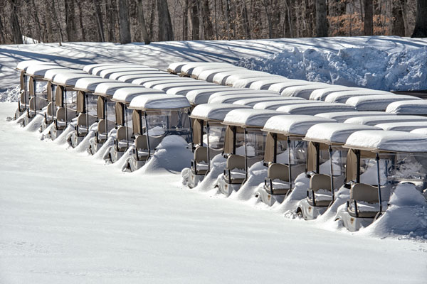 These golf carts are encased in a fresh layer of new snow and will have to sit idle for a little while before spring begins to break Winter’s icy grip. I suppose you could play a round but finding your ball may be a little time consuming. That idea is about as stupid as the time I was invited to play in a one club tournament! That’s right, you pick one club to use for all your shots, including putting! I picked a driver which turned out to be poor choice for every shot other than your first one.