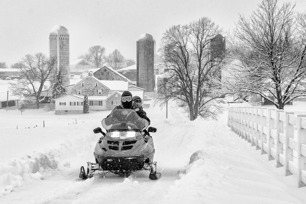The distance from the farm out this lane to where this gentleman is shoveling is well over a football field in length. Now imagine you are 80 plus years old and have to do this all by yourself in single digit temperatures with a small shovel because your grandchildren are busy keeping warm by the fireplace? Now that you imagined that, lets get back to reality, he lives to the right where the fence is and was more or less taking his shovel for a walk. I originally stopped here because I noticed a snowmobile with its lights on down at the farm. I was hoping for a more exciting shot but at least they did come out. This is a horse and buggy farm, but I guess these are considered acceptable?