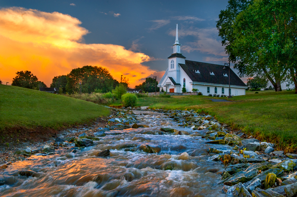 I have been visiting this Church for photo ops lately and trying to challenge myself to get multiple angles that are appealing. We recently had some heavy storms roll through and I was hoping for some lightning shots here but instead I arrived to find this normally dry stream bed was flowing for the first time I have ever seen. They must have gotten hammered because there was debris three quarters of the way up the slope on the left,so that puts it at maybe 4ft deep at the peak and what is shown here might be 10 inches.