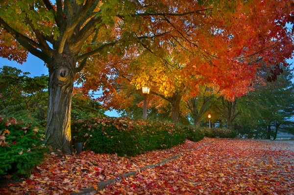 Hello all, been quite some time since my last post here but thankfully I was motivated enough to go out for a fall shot or two. This photo is the result of persistence and timing. Let me start by saying I was on my way to work the preceding day and saw these lamp posts lit up amongst the fall foliage so I pulled in, got my gear out,set my tripod up and as soon as my camera hit the tripod, the lamps all went out? I laughed to myself on the impeccable timing, and then wandered around to see if there was a sensor controlling them. I did not find one so I knew I was coming back that evening and I did get a few shots but it was a little breezy and less than ideal. Fast forward to the following morning and I headed here long before sunrise because there was a heavy fog and I was eager to capture something. I experimented for a good hour until the ambient light started to increase and that was when I captured this shot. All of a sudden on the other side of the bushes I heard a literal army of backpack blowers headed my way. There were 3 or 4 guys with backpacks and one guy pushing a rolling blower that was really moving leaves. The crew noticed me and graciously left me continue for 10 minutes and then within a few minutes, the entire yard and parking lot were completely bare. The one gentleman told me the tenants fuss like crazy if there are leaves laying around. So I got the shot thankfully and hope you like it.
