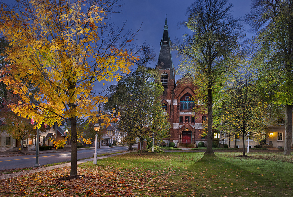I just caught this foliage before wind and rain literally stripped the tree bare the following day. Years ago I was photographing in here at night and a couple ghost stories were shared, then I went up to the second or third floor, only to walk by a room, glance in and see a figure of a woman in an old dress, which about stopped my heart. Turns out they had a dressed mannequin up there. It would have been nice to mention her! This building houses the museum for the local Historical Society.