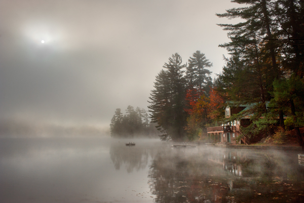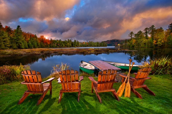 This peaceful little scene was at our motel in Lake Placid and was worthy of a shot. We stayed at the motel three days and it was only on the last day that I walked out back and saw this view.Sometimes the shot is right under your nose,but you need to look. The cabin runs around 500 bucks for two nights but being able to look out your bedroom window at this scene might be worth every penny.There was only one Adirondack chair out front,so I shot one frame with it on the right side and then moved it to the left for a second shot.I then layered the two images together to end up with the final image,which was possible thanks to the tripod.