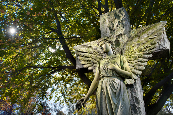 This figure kneels at the grave of someone named Pidgeon,who is buried in this magnificent Victorian era cemetery that is full of highly detailed statuary.The only info I could find was that the monument cost $2,350 dollars and shipped in october of 1898. It mentions eight stone cutters,a polisher,a statue cutter,and letter cutter. I shot this in infrared on a sunny day,which turns the foliage a dreamy white. I lit the statue shadow areas to show a bit more detail.